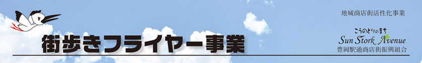 当地の市街地には全国的にも特異的に多く遺る“復興建築”群が存在する。これらを見て歩くためのマップを作成し、地域外からの来街者に配布するものである。“復興建築”を目指して当地を訪れる来訪者は、コウノトリ、カバン、スイーツを利用した地域活性化の取り組みとも相まって、今後増えて来るものと思われる。商店街としてもは、こうした商圏外からの買い物目的ではない来街者を商店街の顧客とできるよう、街歩きに積極的に協力していきたい。 |